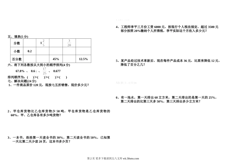 西师版六年级数学下册第一单元测试题2.doc_第2页