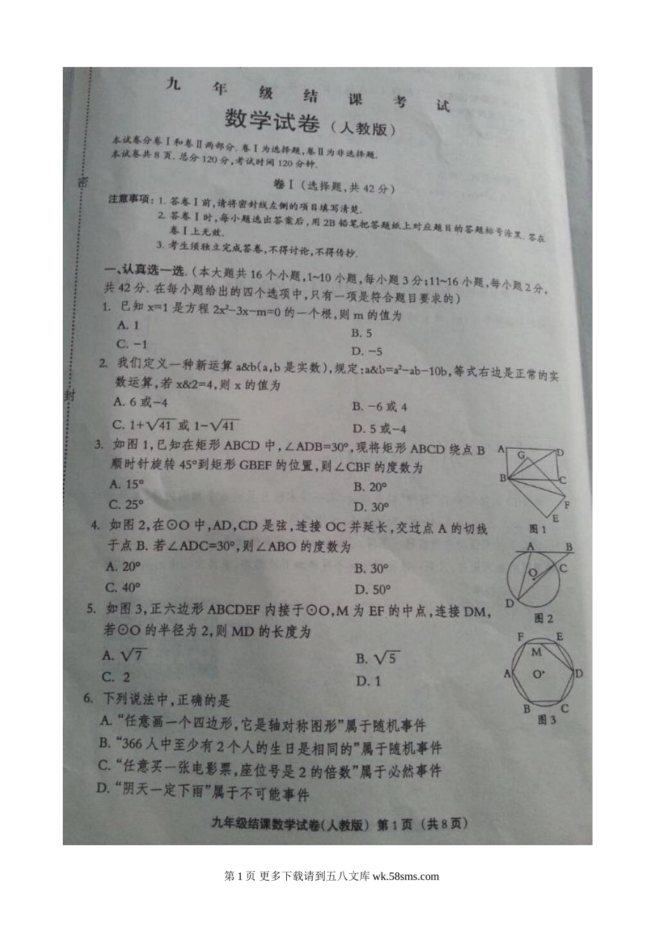赵县九年级数学结课考试试卷及答案.doc_第1页