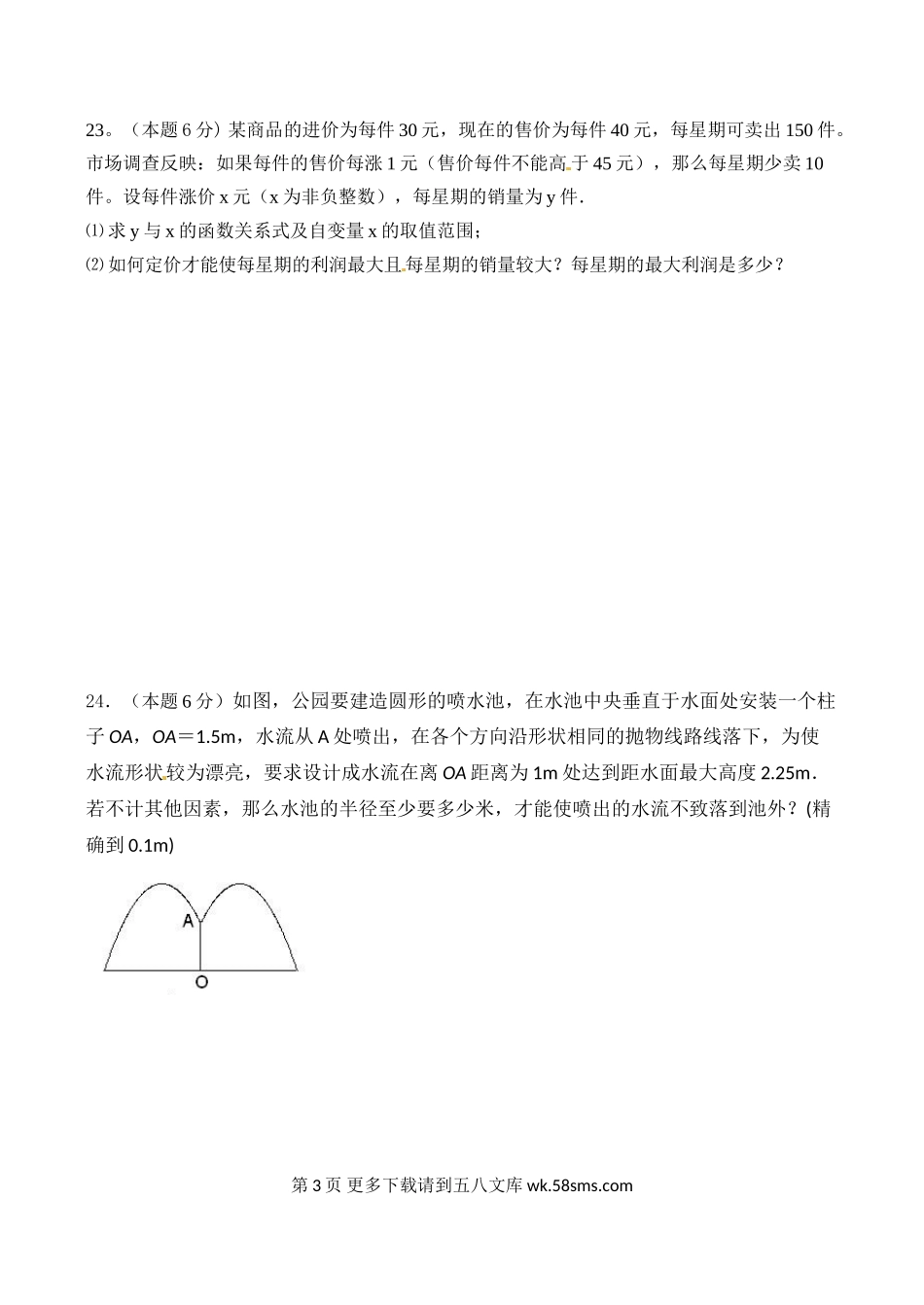 OCBA第4题Oyx第11题ABCDEOOABCDFE九年级(上)数学综合练习题(五)一、填空题:(本大题共l2小题。每小题2分,共24分)1.方程x2=9x的解是.2.已知一元二次方程2x2-3x-1=0的两根为x1、x2,则x1+x2=3.如图,点A、B...