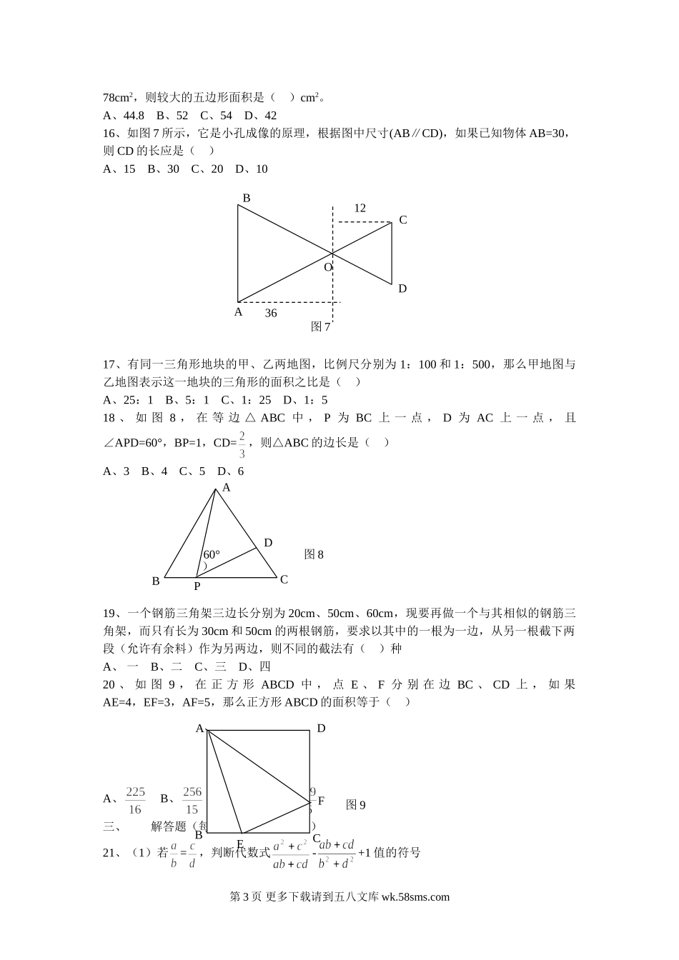 九年级数学数学九年级下人教新课标第二十七章《相似》测试题E.doc_第3页