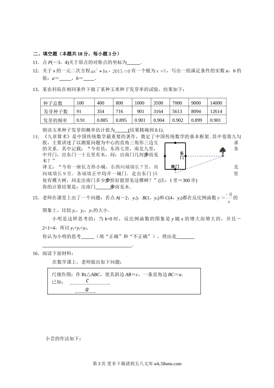燕山区初三数学期末试卷及答案.doc_第3页