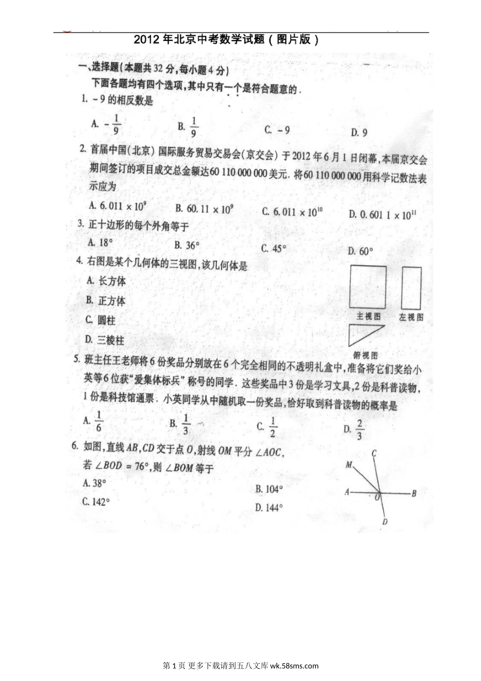 2012年北京市中考数学试题.doc_第1页