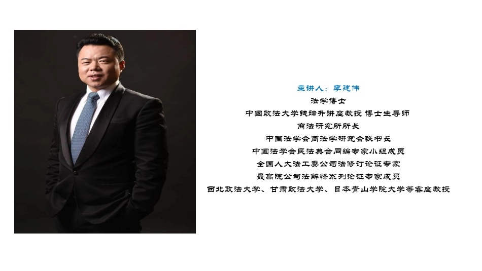李建伟2022年公司法律实务四讲第一讲公司组织过程:设立、成立、变更、清算与终止【春季课程】第二讲控股股东控制公司之道与少数股东抗争、救济路径【夏季课程】第三讲董监高履职与法人机关规范运作【秋季课程】...