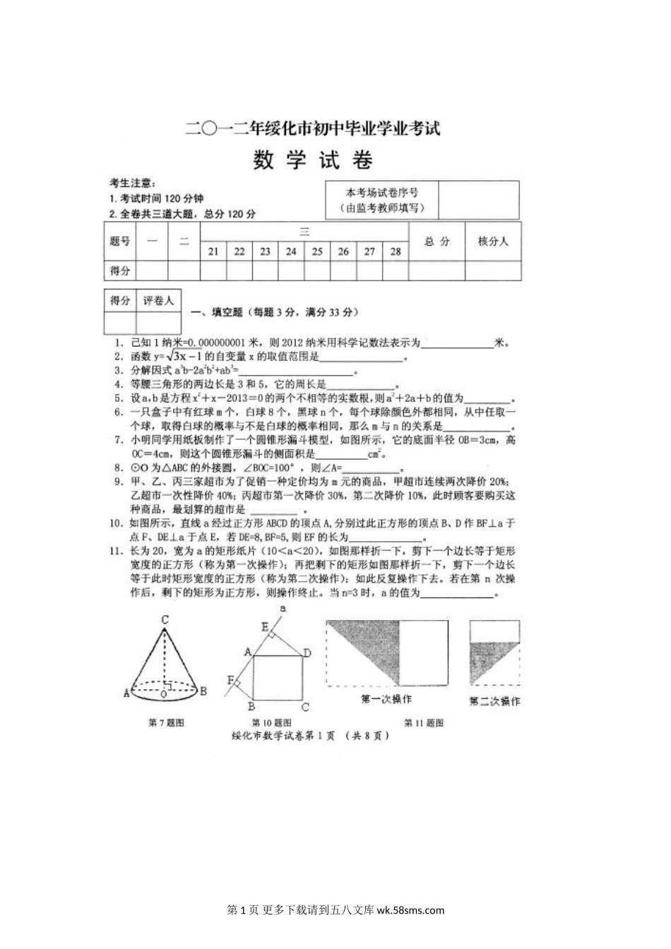 2012年绥化市中考数学试题及答案.doc_第1页