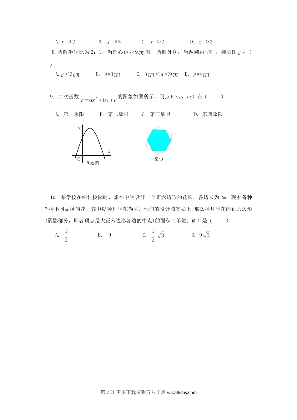 陕西延安实验中学08-09学年九年级上期终考试试卷--数学.doc_第2页