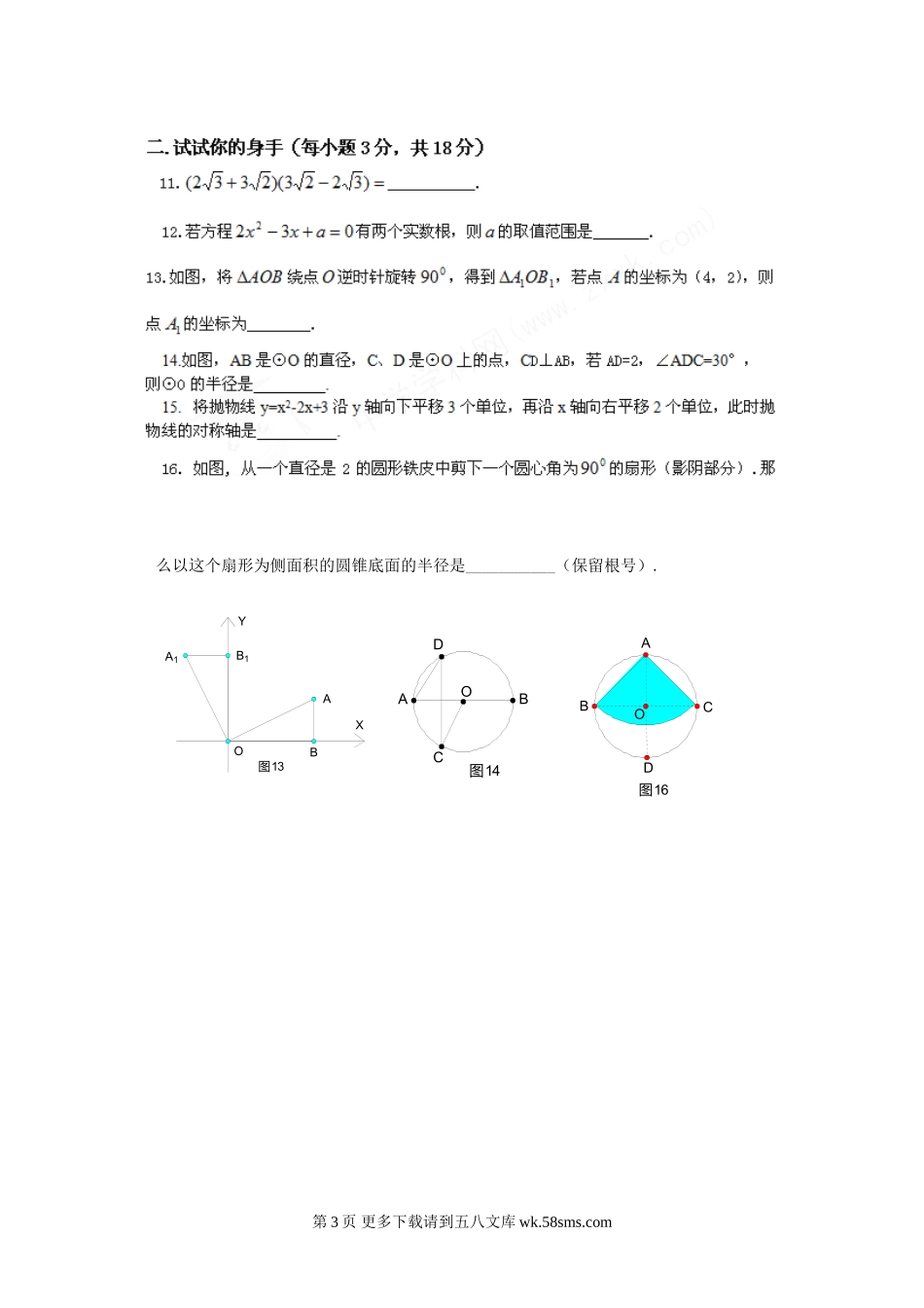 陕西延安实验中学08-09学年九年级上期终考试试卷--数学.doc_第3页