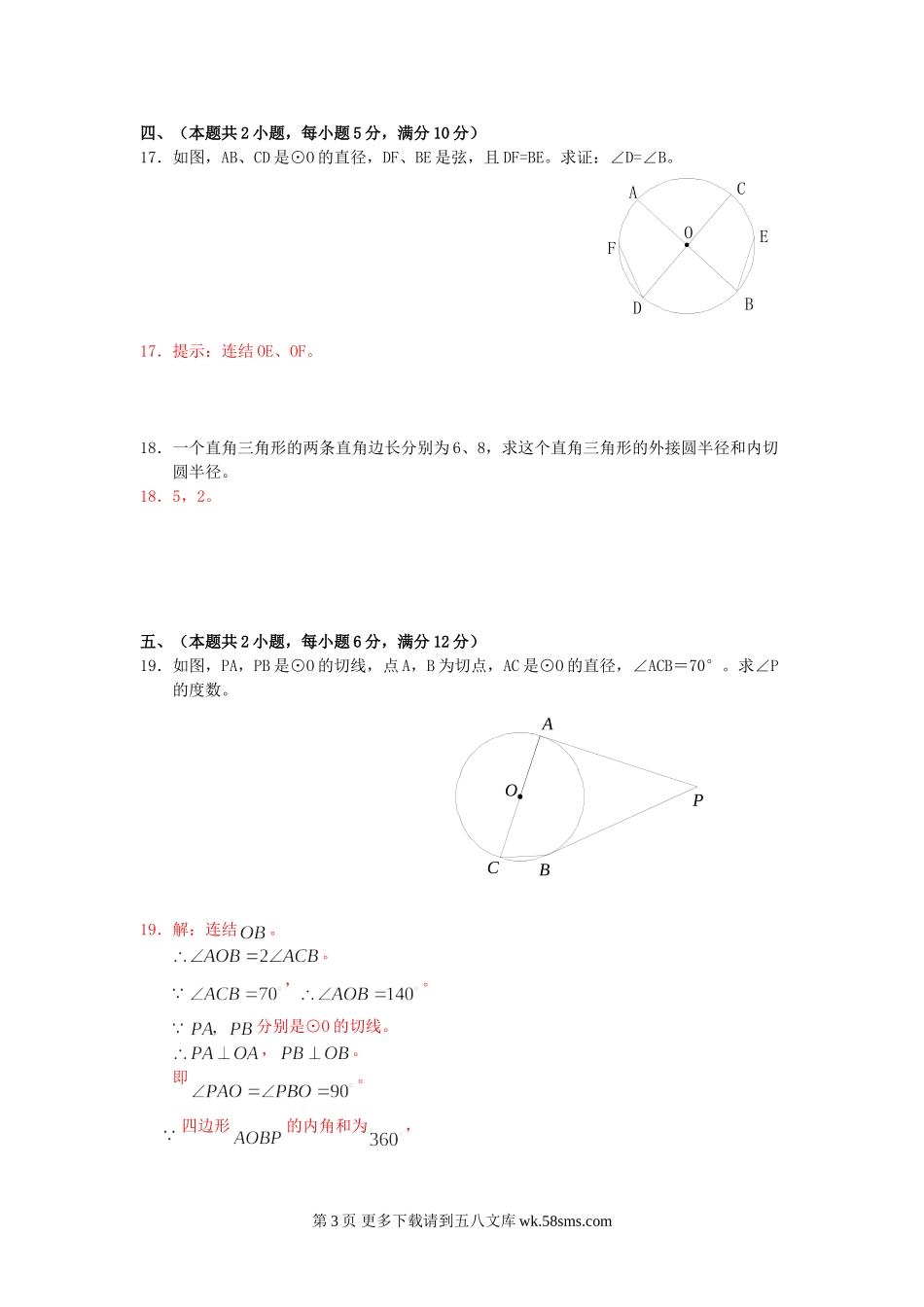 九年级数学上册数学九上人教版单元试卷7(圆).doc_第3页