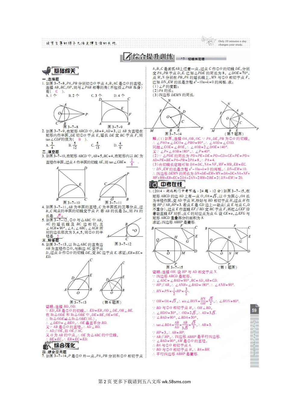 2015年第三章 第七节 切线长定理练习题及答案解析.doc_第2页