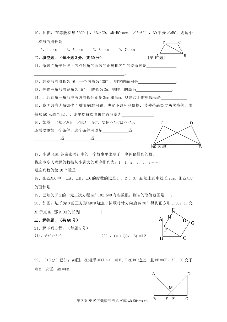 江苏南通镇东中学09-10学年九年级上中期考试试卷--数学.doc_第2页