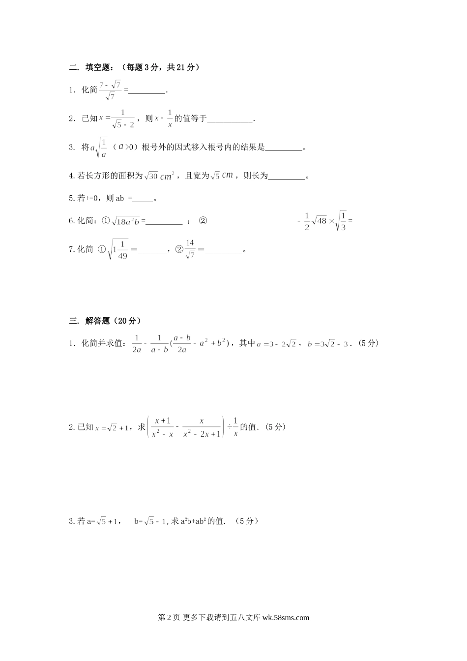 山东济宁邹5中09-10学年九年级上学单元测试试卷--数学(无答案).doc_第2页