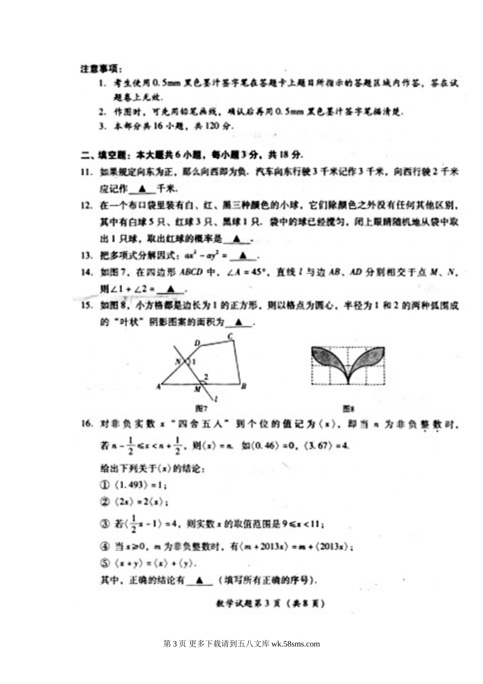 2013年乐山市中考数学试题(无答案).doc_第3页