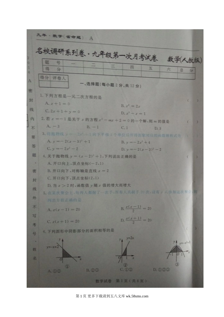 吉林名校调研(省命题)2017届九年级数学第一次月考试卷及答案.doc_第1页