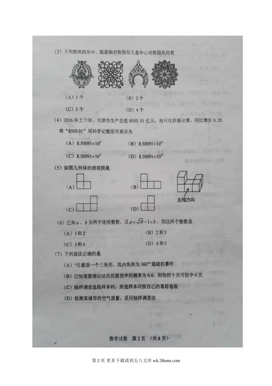 天津市东丽区2017年中考一模数学试题及答案.doc_第2页