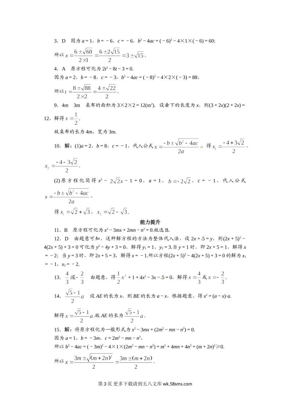 初三九年级数学自我小测 21.2.2公式法第1课时.doc_第3页