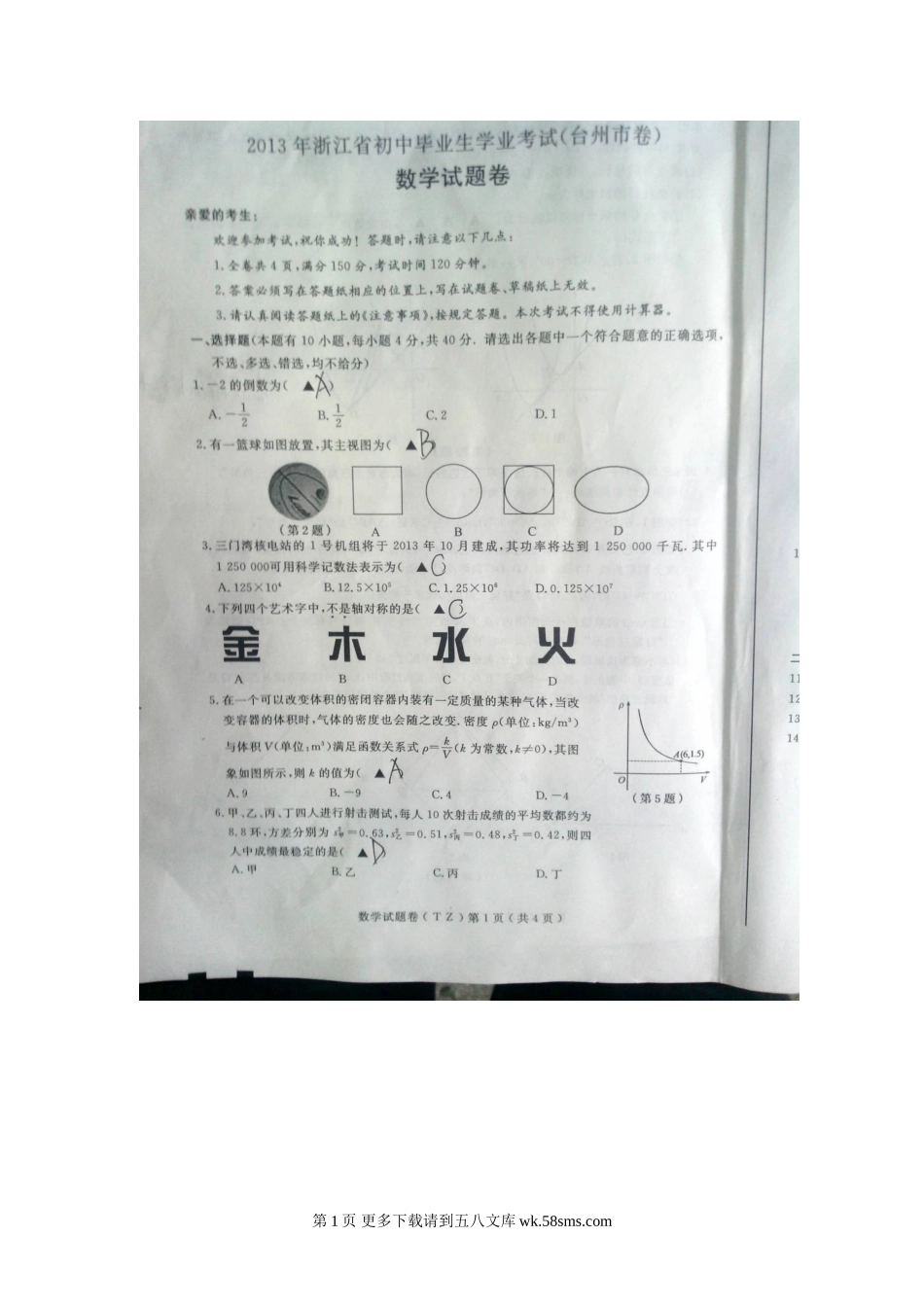 2013台州市中考数学试题卷.doc_第1页