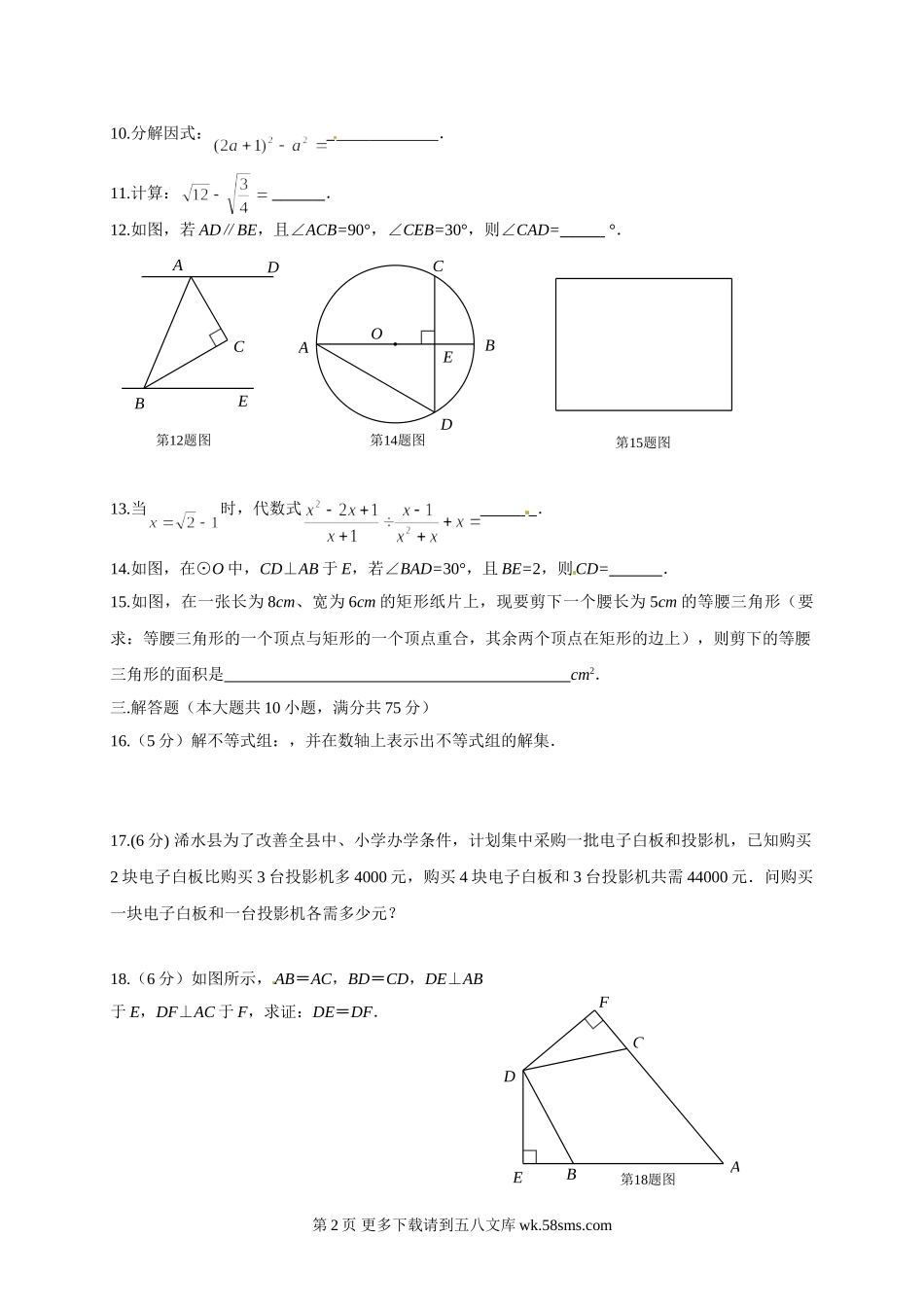 2014年黄冈市中考数学试卷及答案word版.doc_第2页