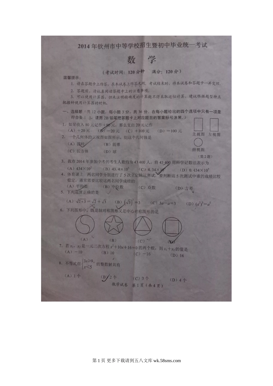 2014年钦州市中考数学试题.doc_第1页