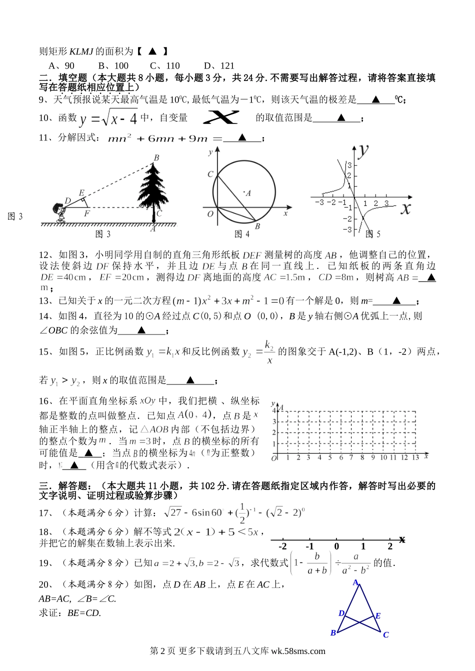 苏科版初三数学第一次月考试卷及答案.doc_第2页