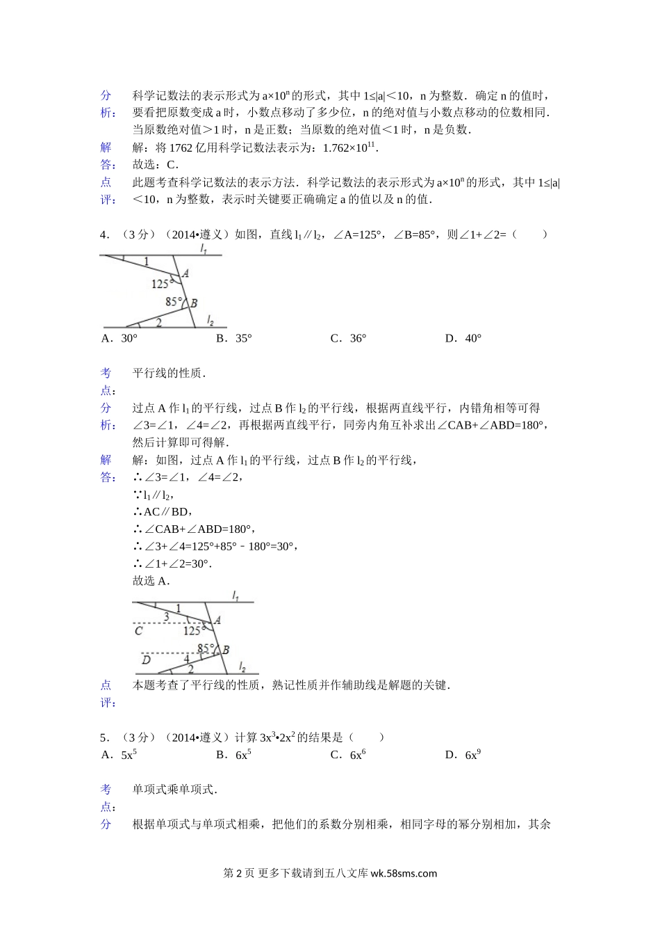 2014年遵义市中考数学试卷及答案解析.doc_第2页