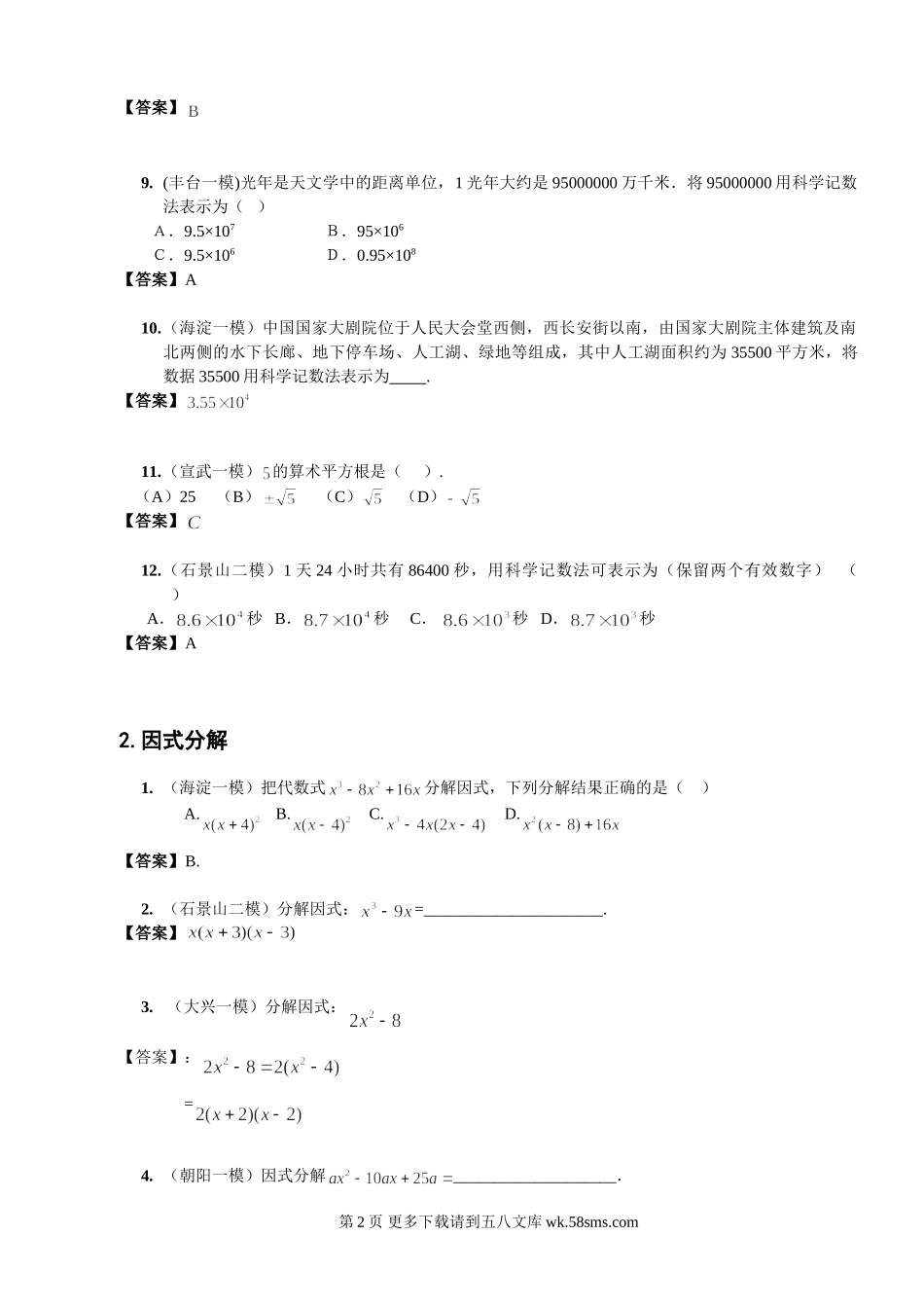 08年北京市中考模拟分类汇编⑴--数与式.doc_第2页