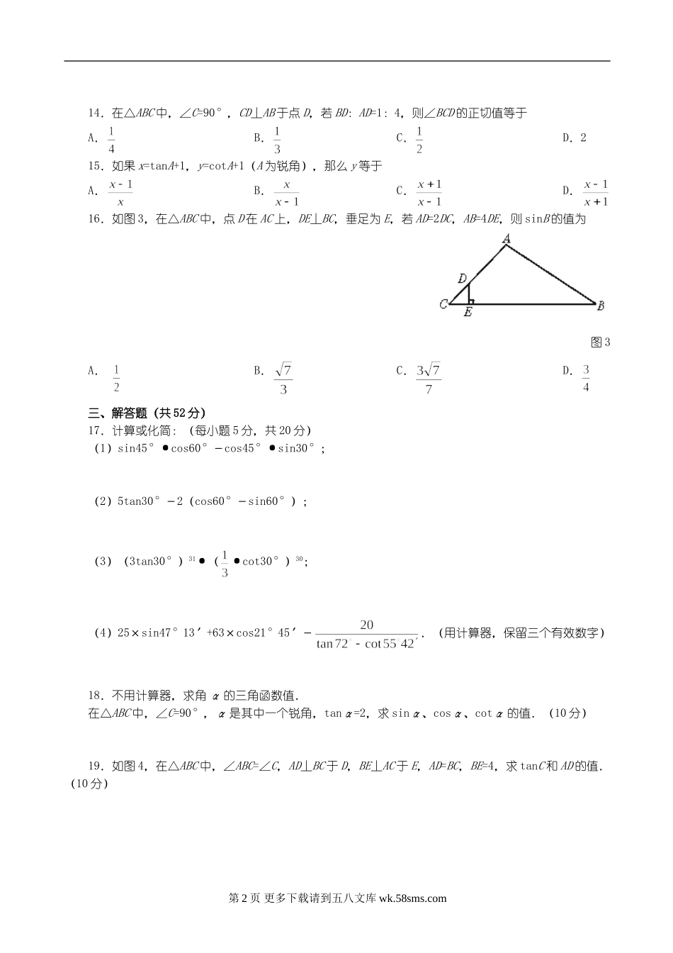数学九年级下人教新课标第二十八章锐角三角函数测试(B卷).doc_第2页