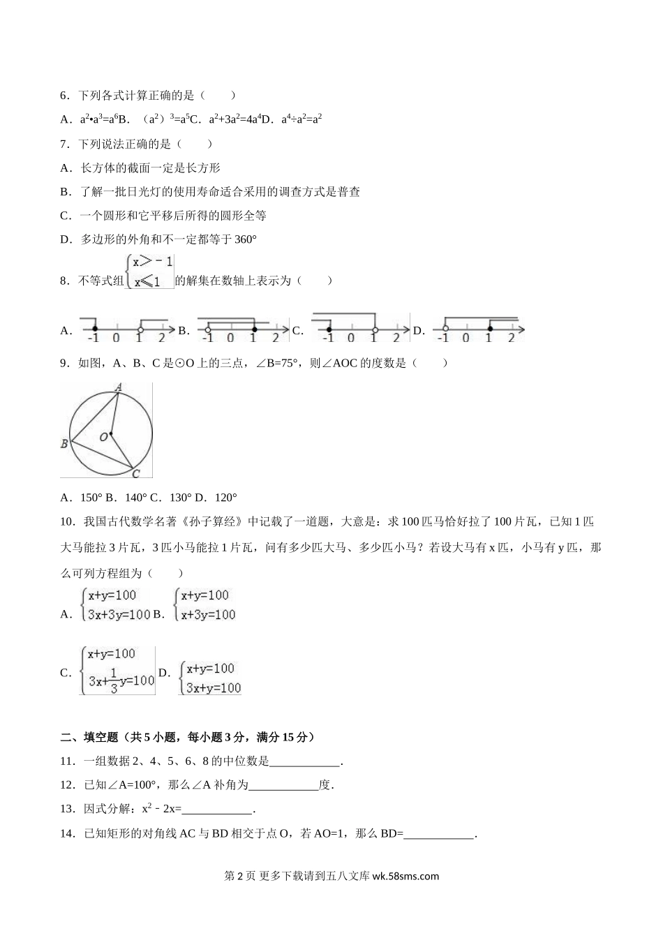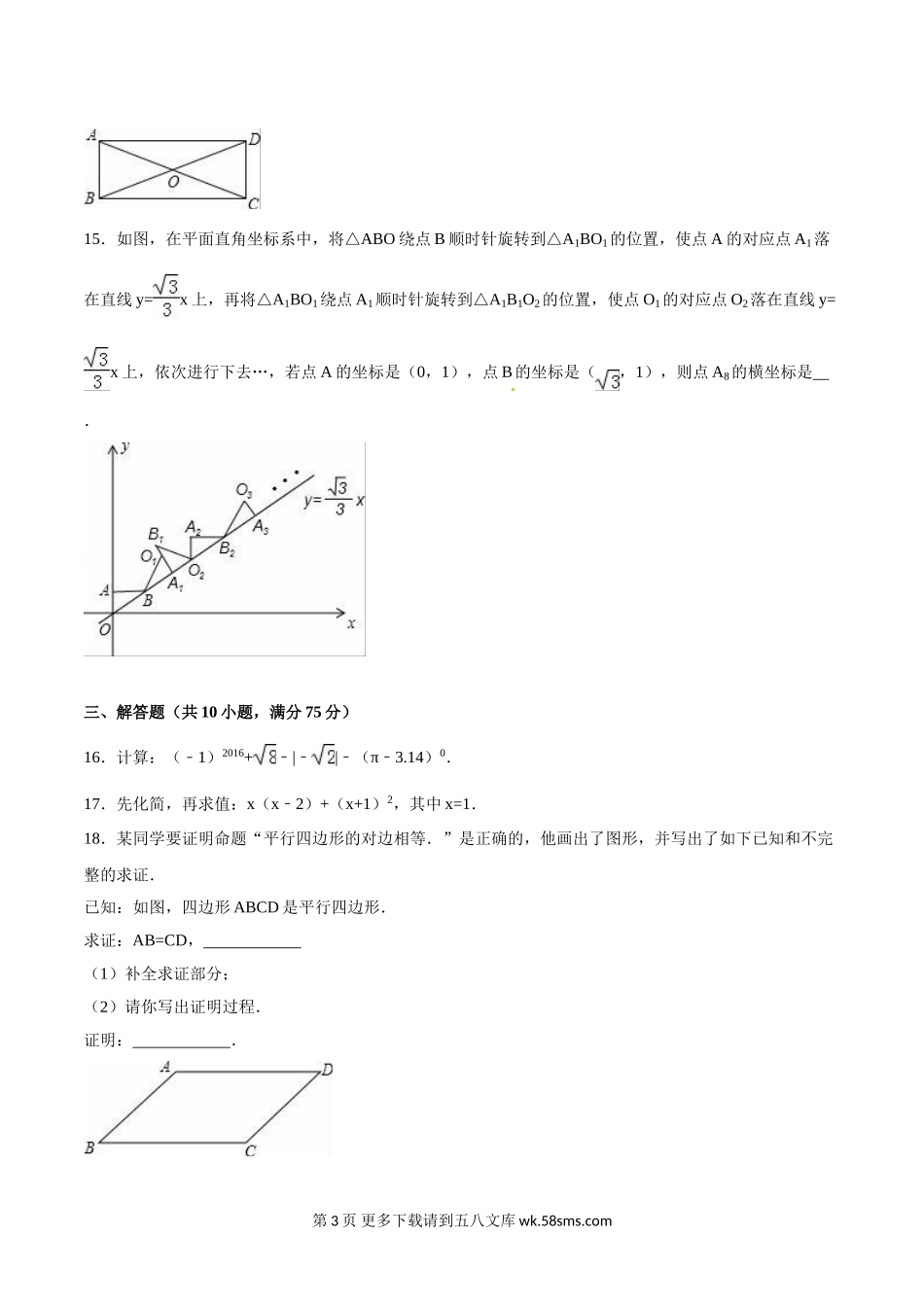 2016年广东省茂名市中考数学试卷一、选择题(共10小题,每小题3分,满分30分)1.2016的相反数是()A.﹣2016B.2016C.﹣D.2.2015年茂名市生产总值约2450亿元,将2450用科学记数法表示为()A.0.245×104B....