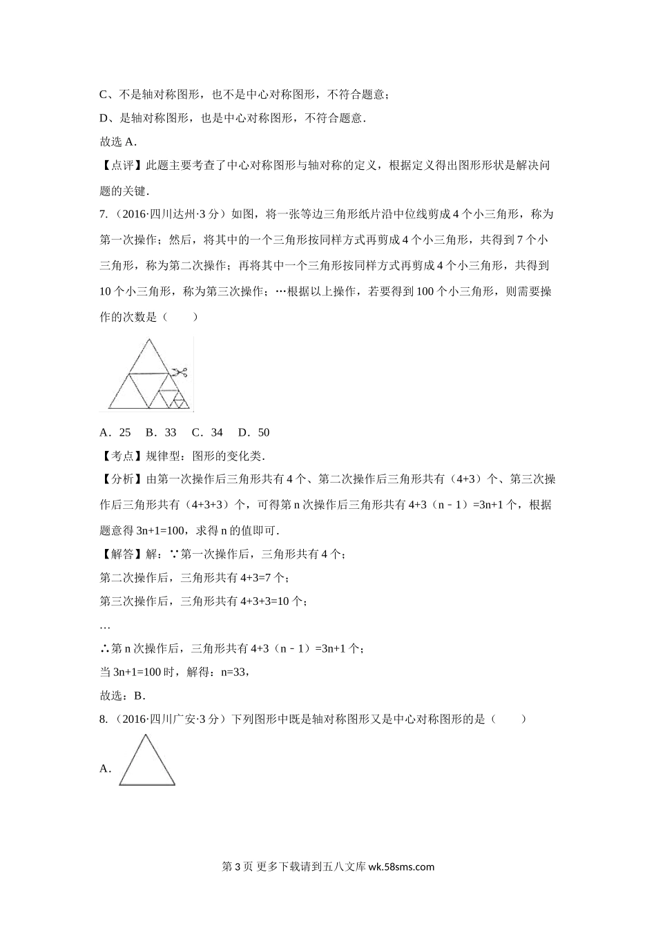 2016年中考数学试卷分类汇编解析:平移旋转与对称.doc_第3页