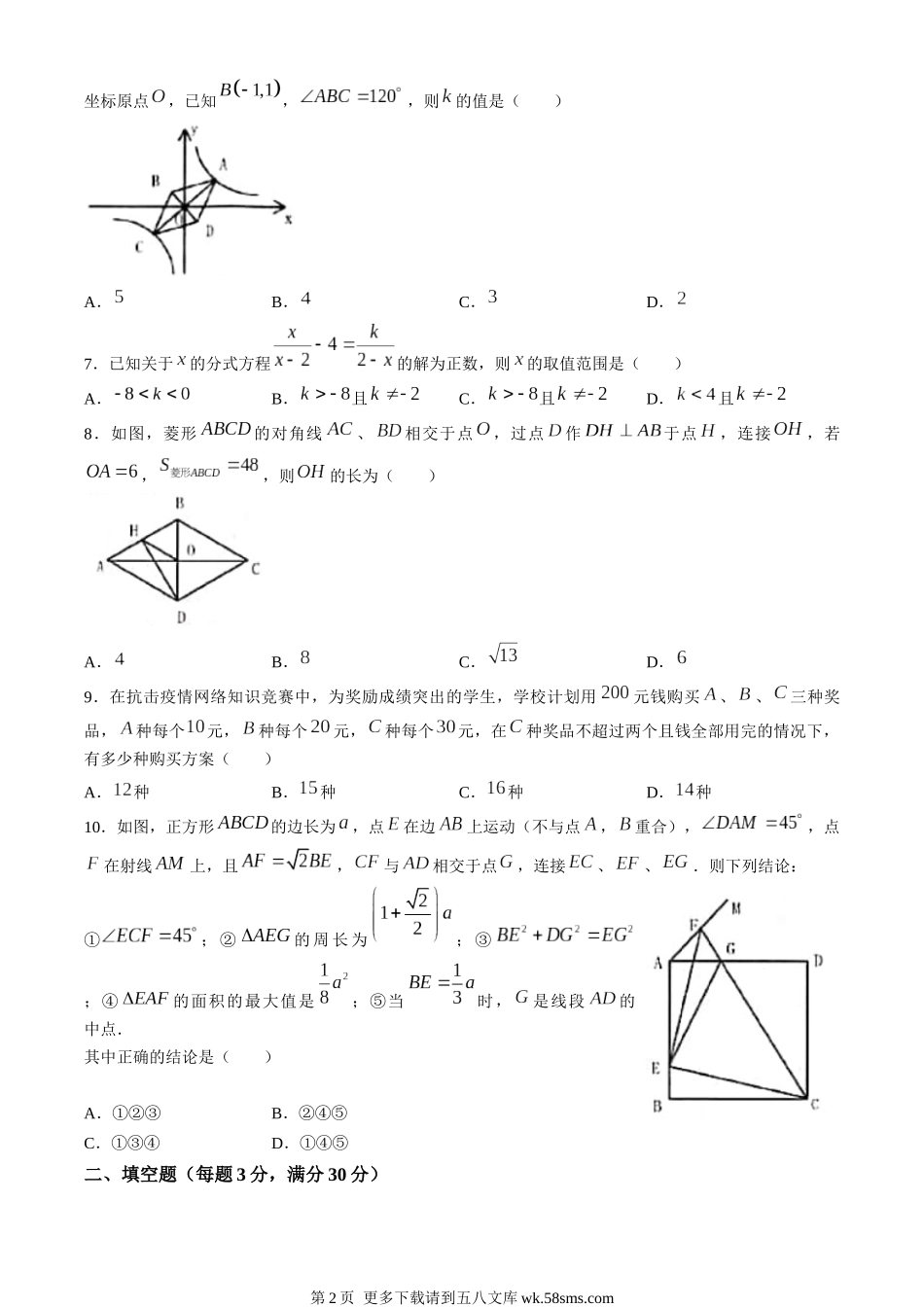 黑龙江省龙东地区2020年初中毕业学业统一考试数学试题考生注意:1.考试时间120分钟2.全卷共三道大题,总分120分一、选择题(每题3分,满分30分)1.下列各运算中,计算正确的是()A.B.C.D.2.下列图标中是...