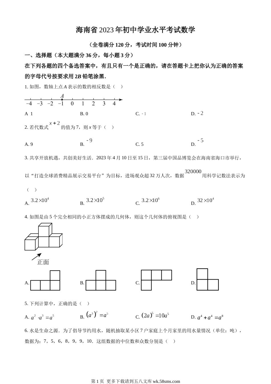 2023年海南省中考数学真题 (原卷版).docx_第1页