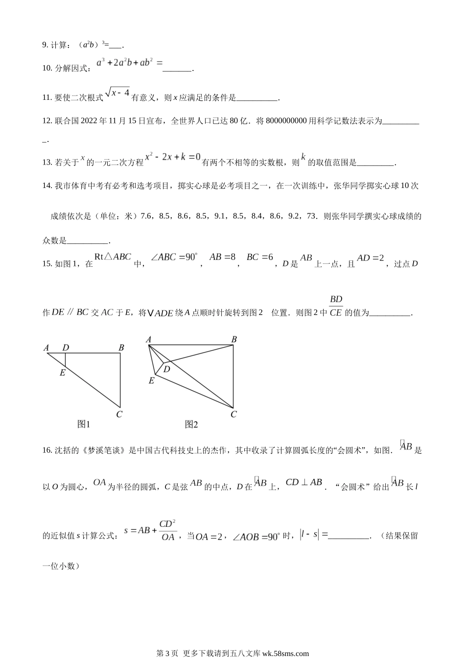 2023年湖南省常德市中考数学真题 (原卷版).docx_第3页