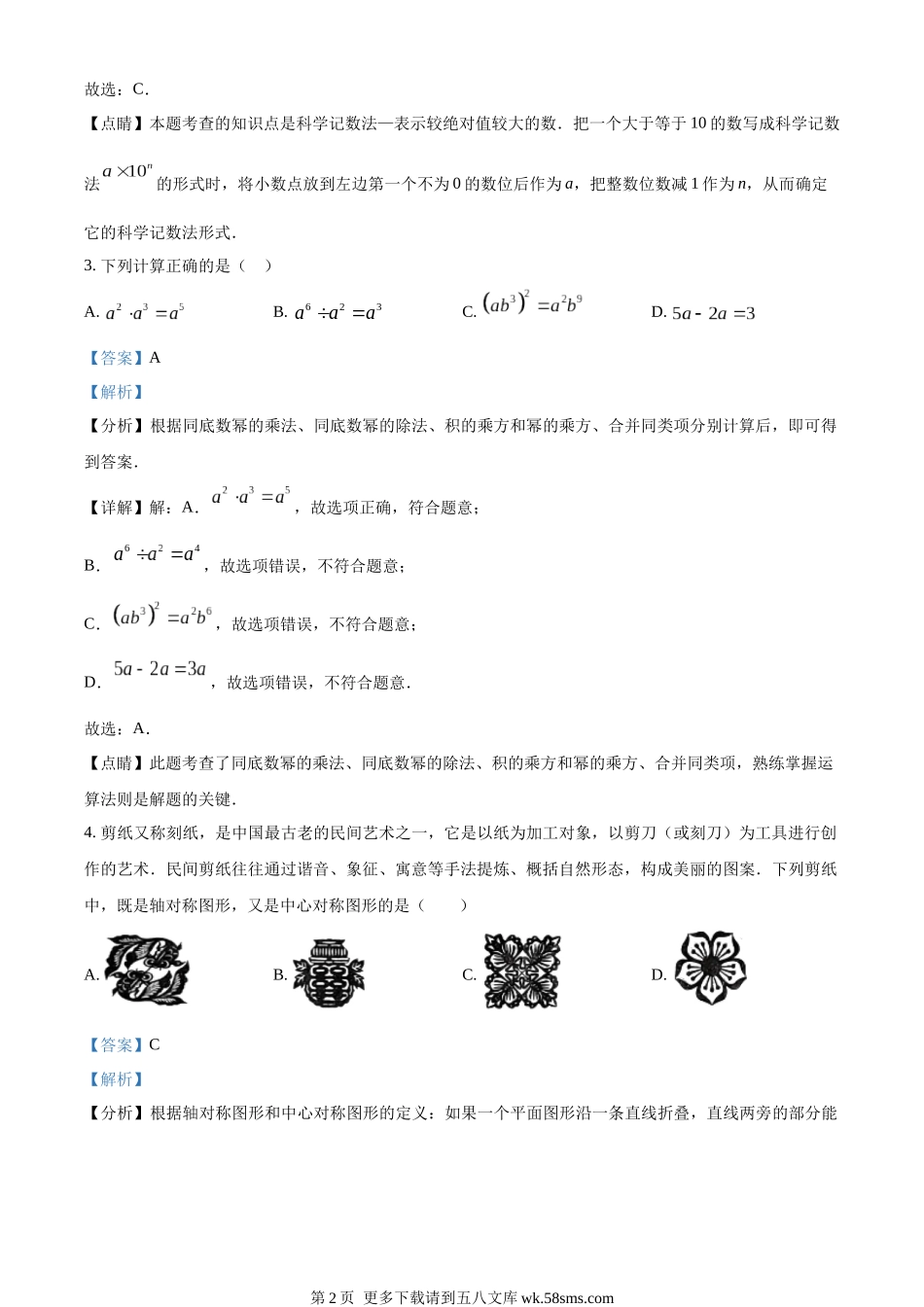 2023年湖南省怀化市中考数学真题(解析版).docx_第2页