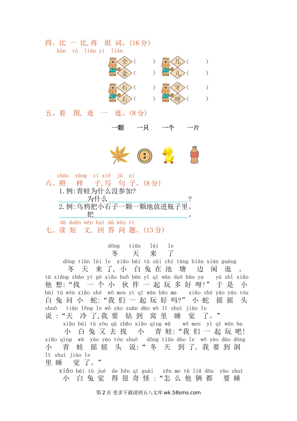 2021年一年级语文上册第八单元测试卷及答案.doc_第2页