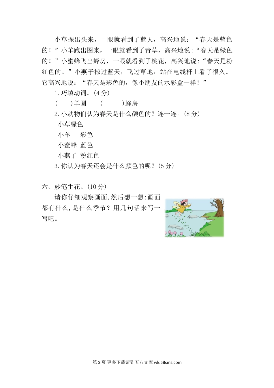 2021年部编版一年级语文下册第一单元测试题及答案二.doc_第3页