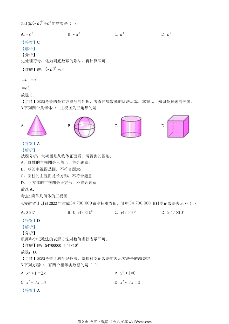 安徽省2020年中考数学试题(解析版).doc_第2页