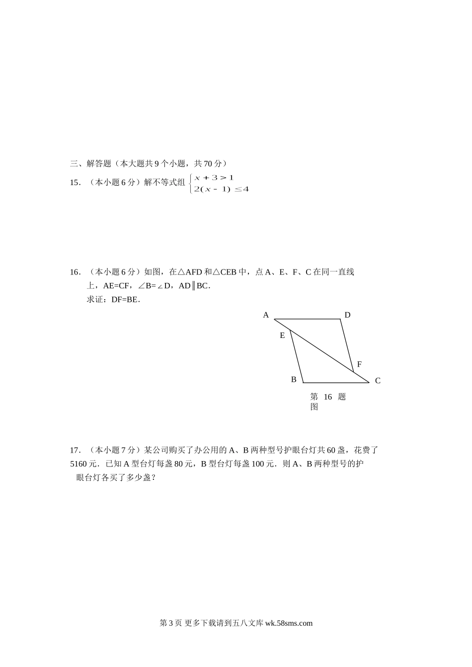 大理市2017年中考数学模拟试卷及答案.doc_第3页