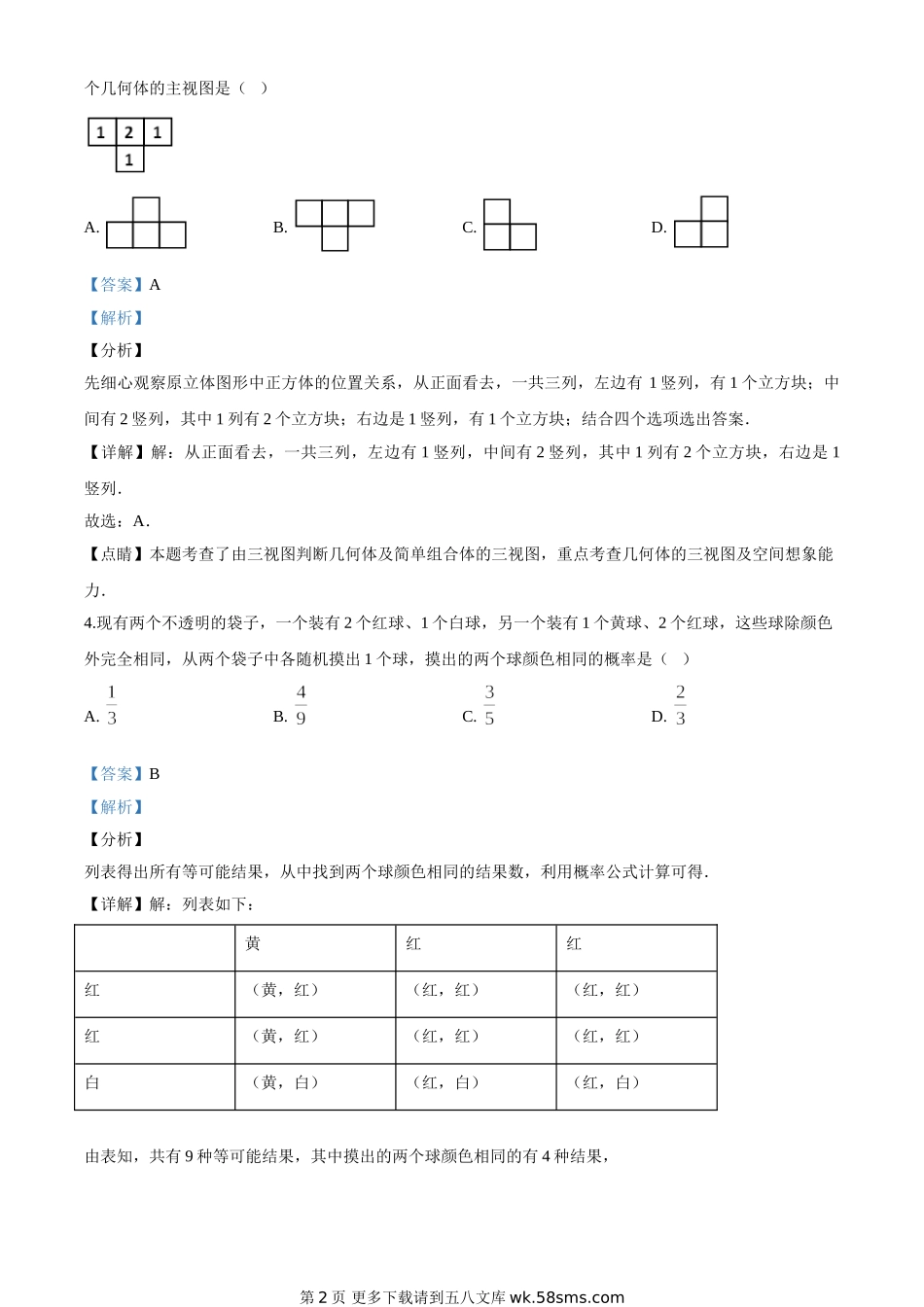 黑龙江省牡丹江、鸡西地区朝鲜族学校2020年中考数学试题(解析版).doc_第2页