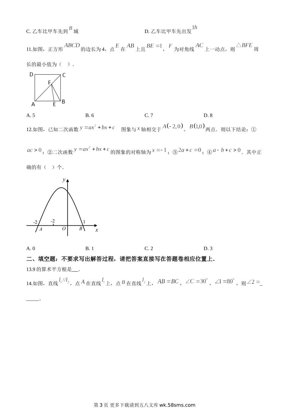 湖北省恩施州2020年中考数学试题(原卷版).doc_第3页