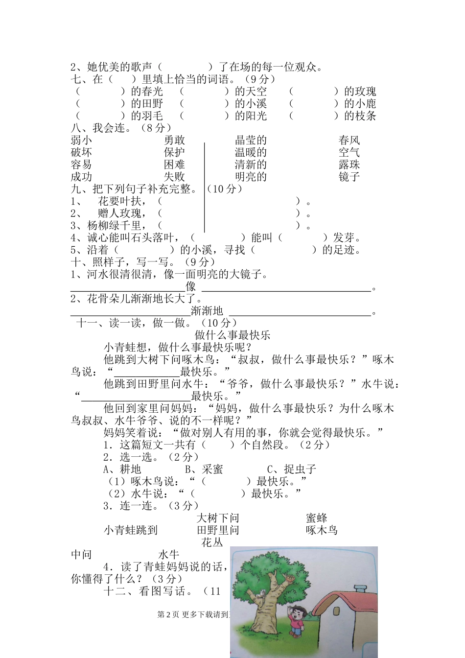2016-2017年人教版一年级语文下册3月月考试卷.doc_第2页
