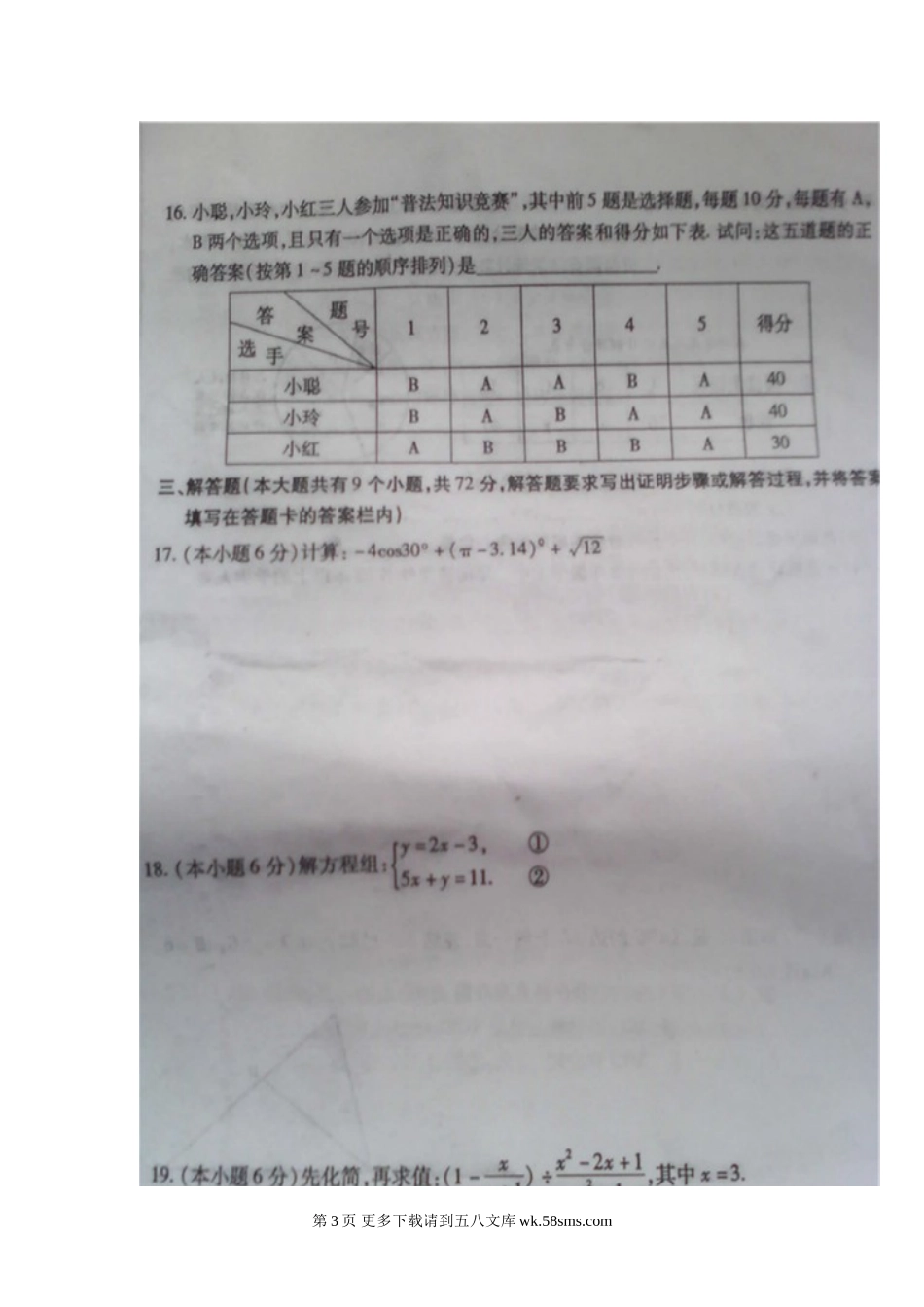 湖南省永州市2014年中考数学试卷及答案(扫描版).doc_第3页