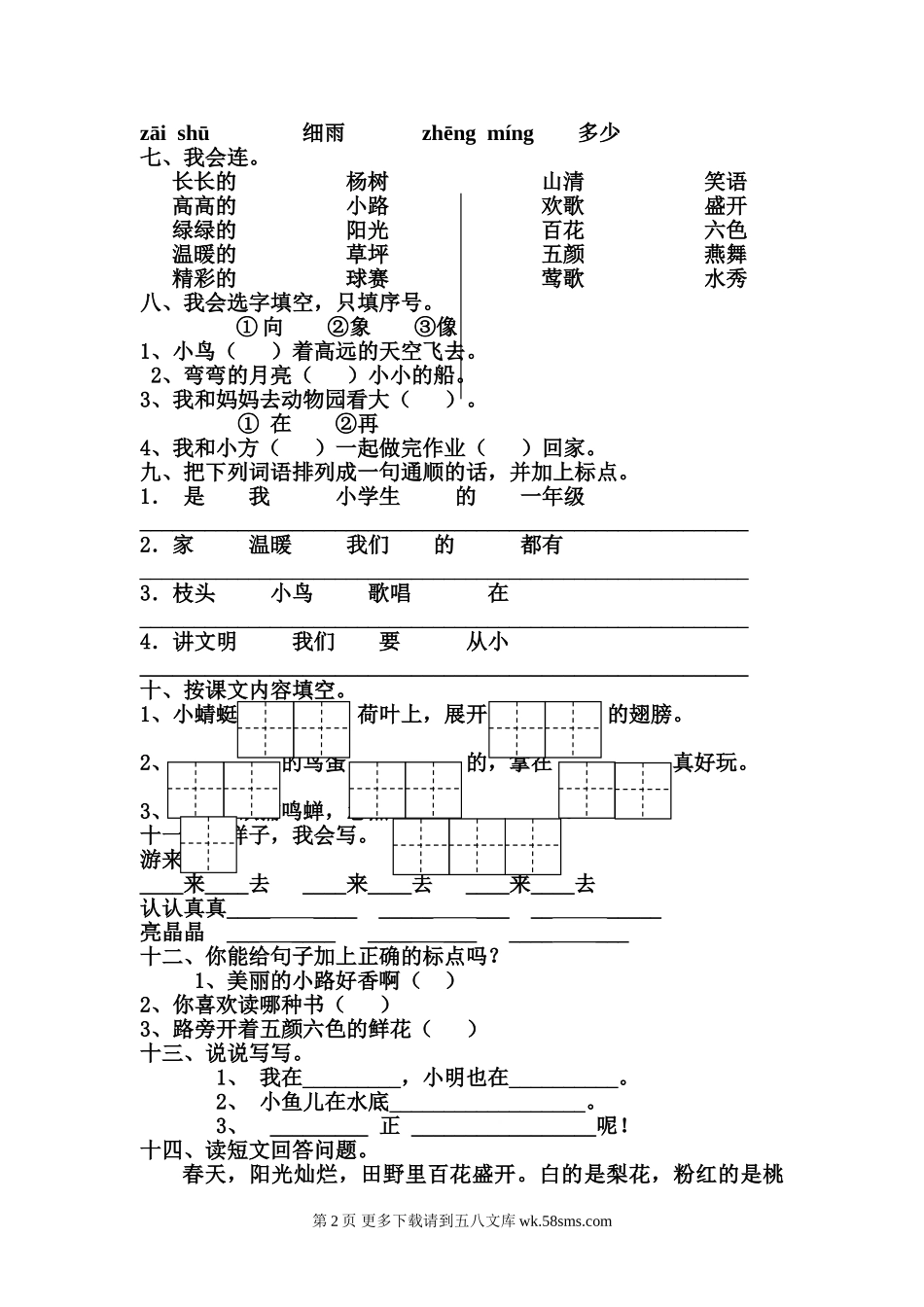 2012-2013年人教版一年级下册语文期中模拟试卷.doc_第2页
