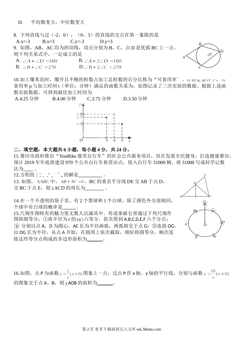 莆田市初中毕业班二检数学试卷.doc_第2页