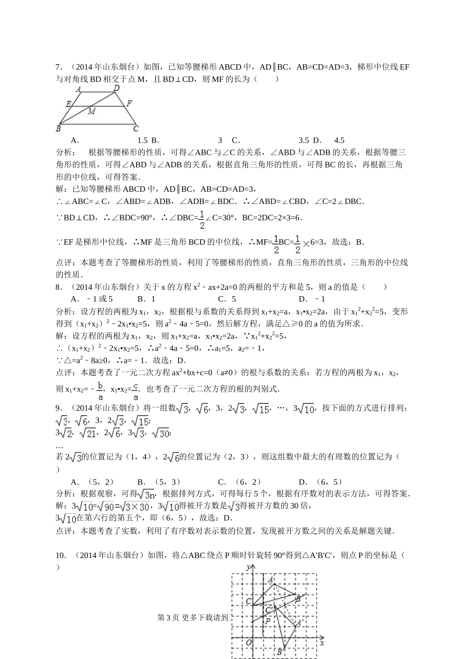 山东省烟台市2014年中考数学试题(WORD解析版).doc_第3页