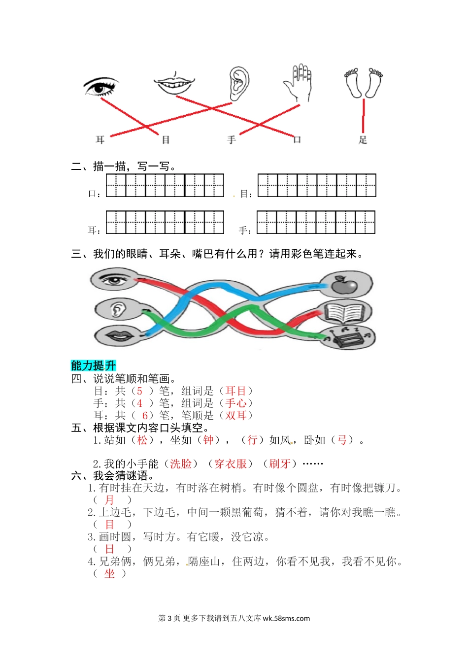 一年级语文识字3    口耳目 同步练习.doc_第3页