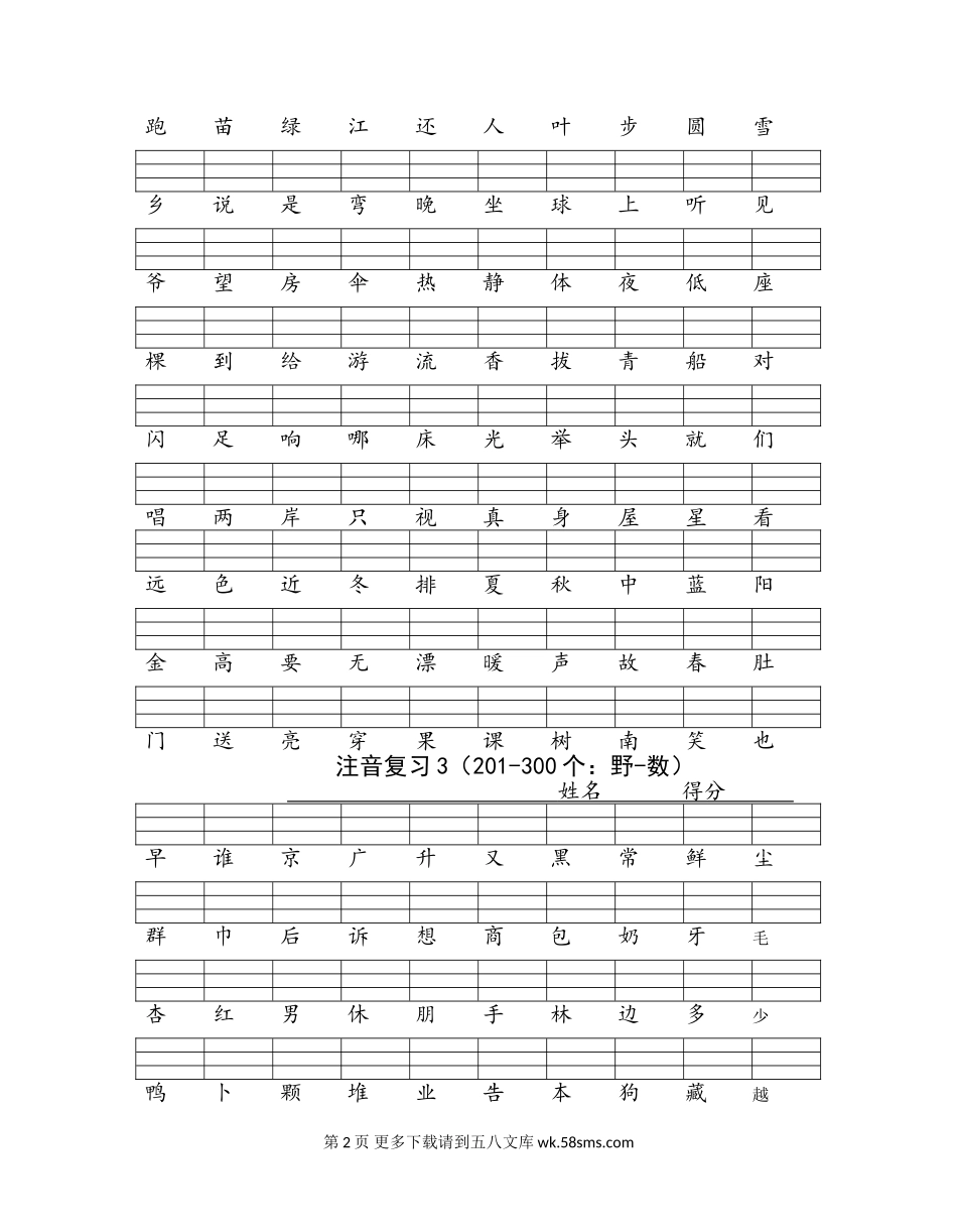 注音复习1(1-100个:爸-灯)姓名得分爸天车的九出十兔大水土地里小吃灯洗服在一去二五八七和耳目日月马禾竹书你我家飞鱼木读他有牛草好口鸟妈校她老朵鹅条米花哥弟雨骑六个下衣画片右半云鸡话桥四做过了不乐羊爱...