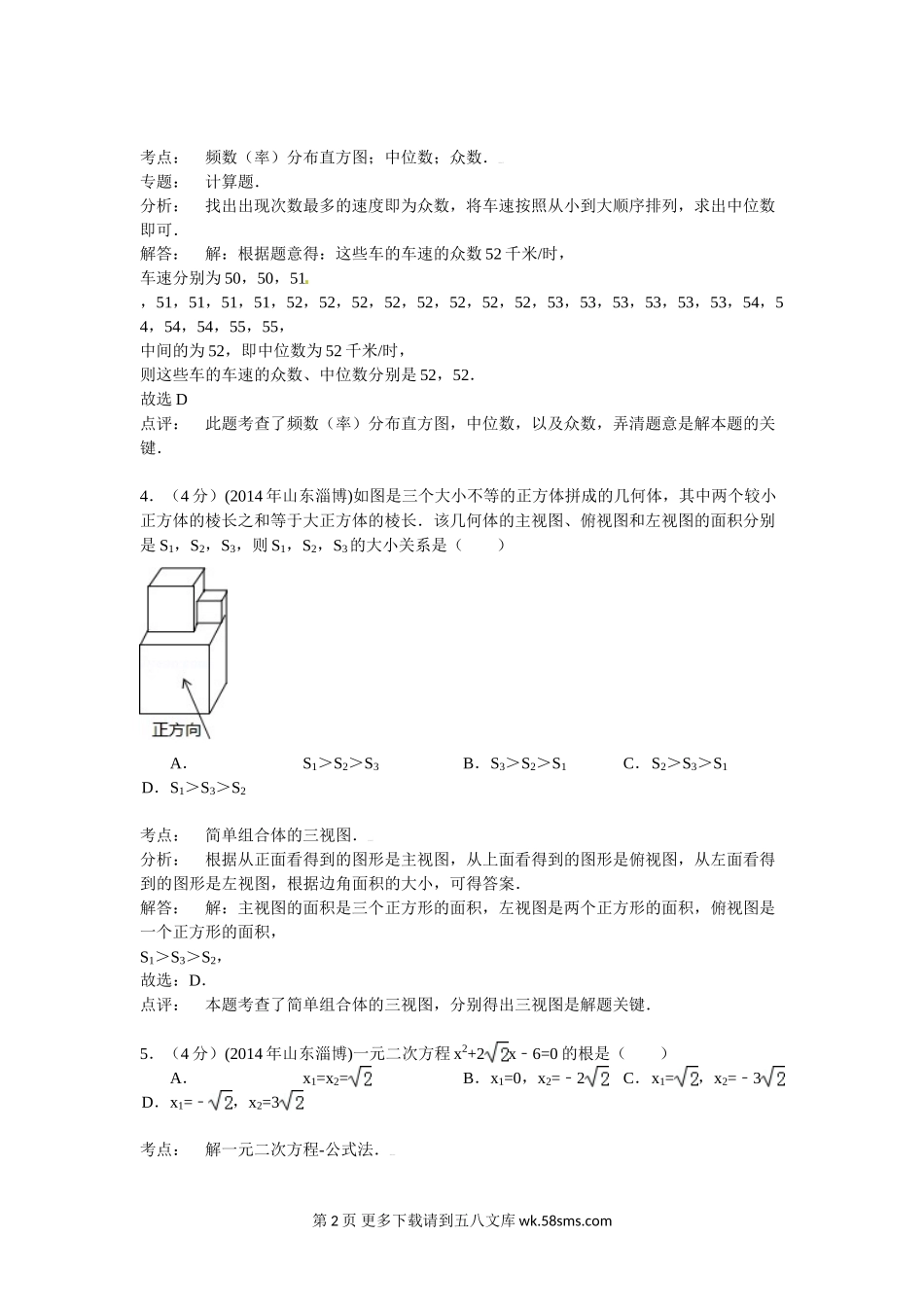 中考数学山东省淄博市2014年中考数学试题(word版,含解析).doc_第2页