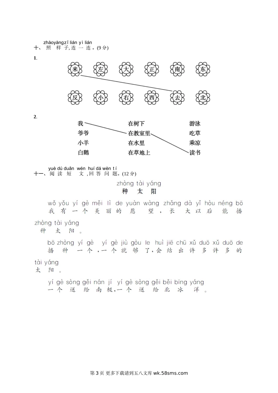 期中综合练习(考查范围:识字1~5、汉语拼音、课文1~4时间:60分钟满分:100分)题号一二三四五六七八九十十一十二总分得分一、qǐng请bǎ把pīn拼yīn音bǎo宝bǎo宝sòng送huí回jiā家。(14分)siufziɑeryinɡwyen...