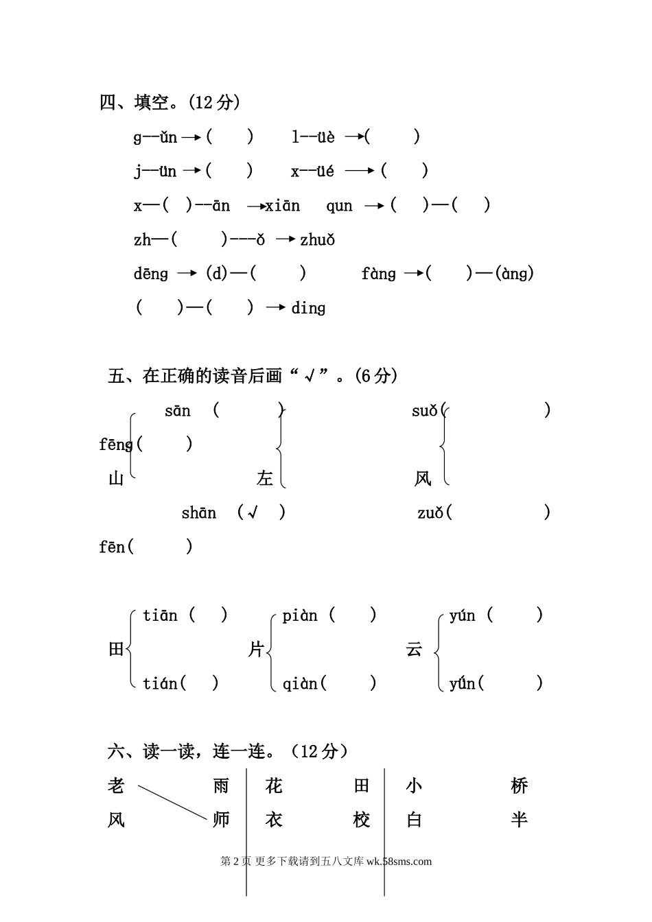 2007——2008学年度第一学期新城小学一年级语文第四单元测试卷班别:_________姓名:_________座号:_____得分:______一、按声母字母顺序连一连,看看是什么动物。(23分)二、比一比,写一写(3分)ɑi—-ɑn---ɑoou...