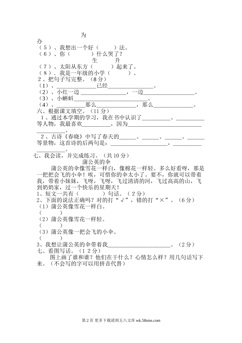 小学语文一年级下学期期末试卷.doc_第2页