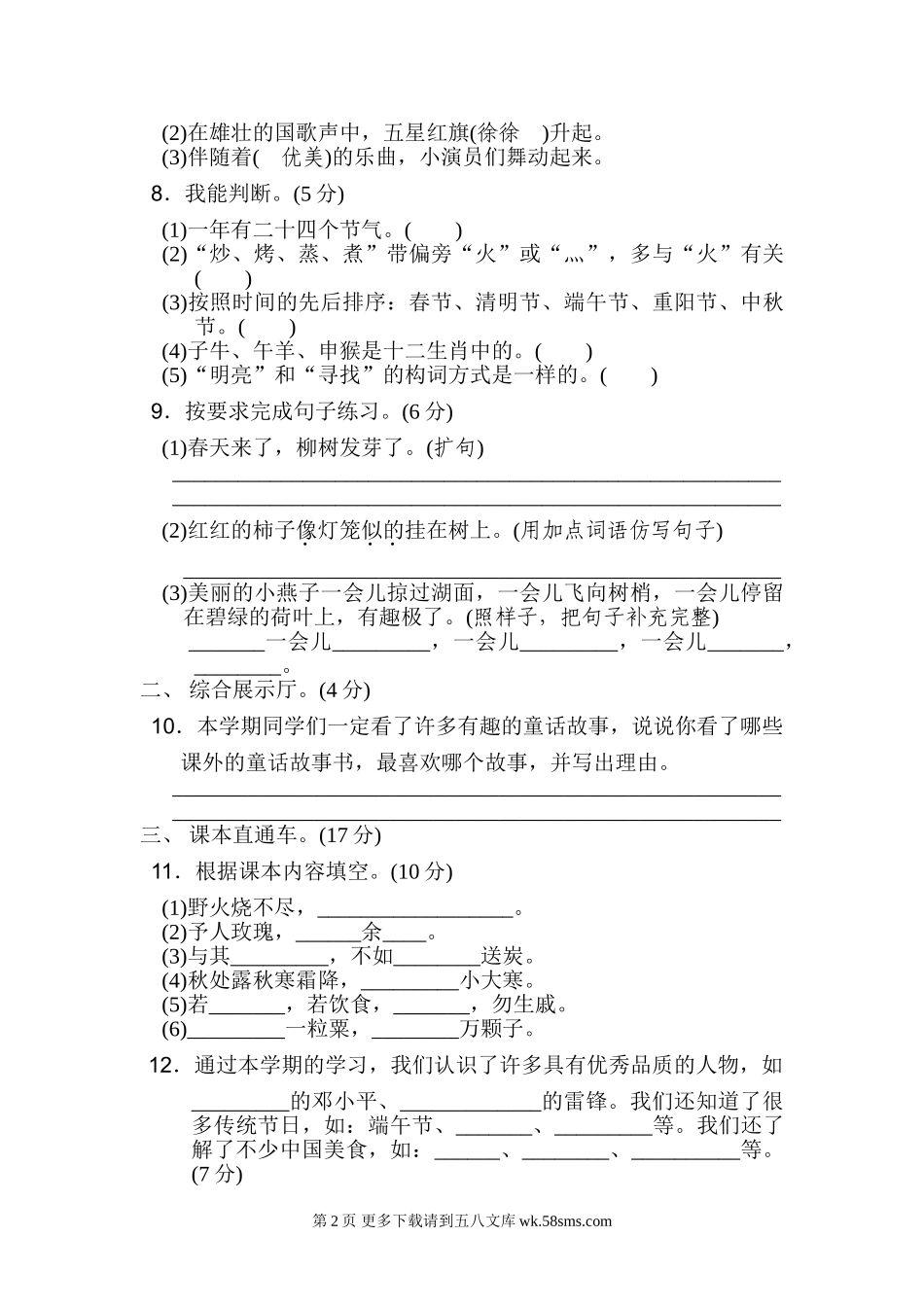 期末检测卷时间:60分钟满分:100分一、基础训练营。(54分)1.下面加点字的读音全都正确的一项是()(2分)A.丝绦(tāo)草籽(zǐ)泥泞(nínɡ)B.蔗糖(zhē)草坪(pín)陀螺(luó)C.教诲(huì)喘气(chuǎn)半晌(sh...