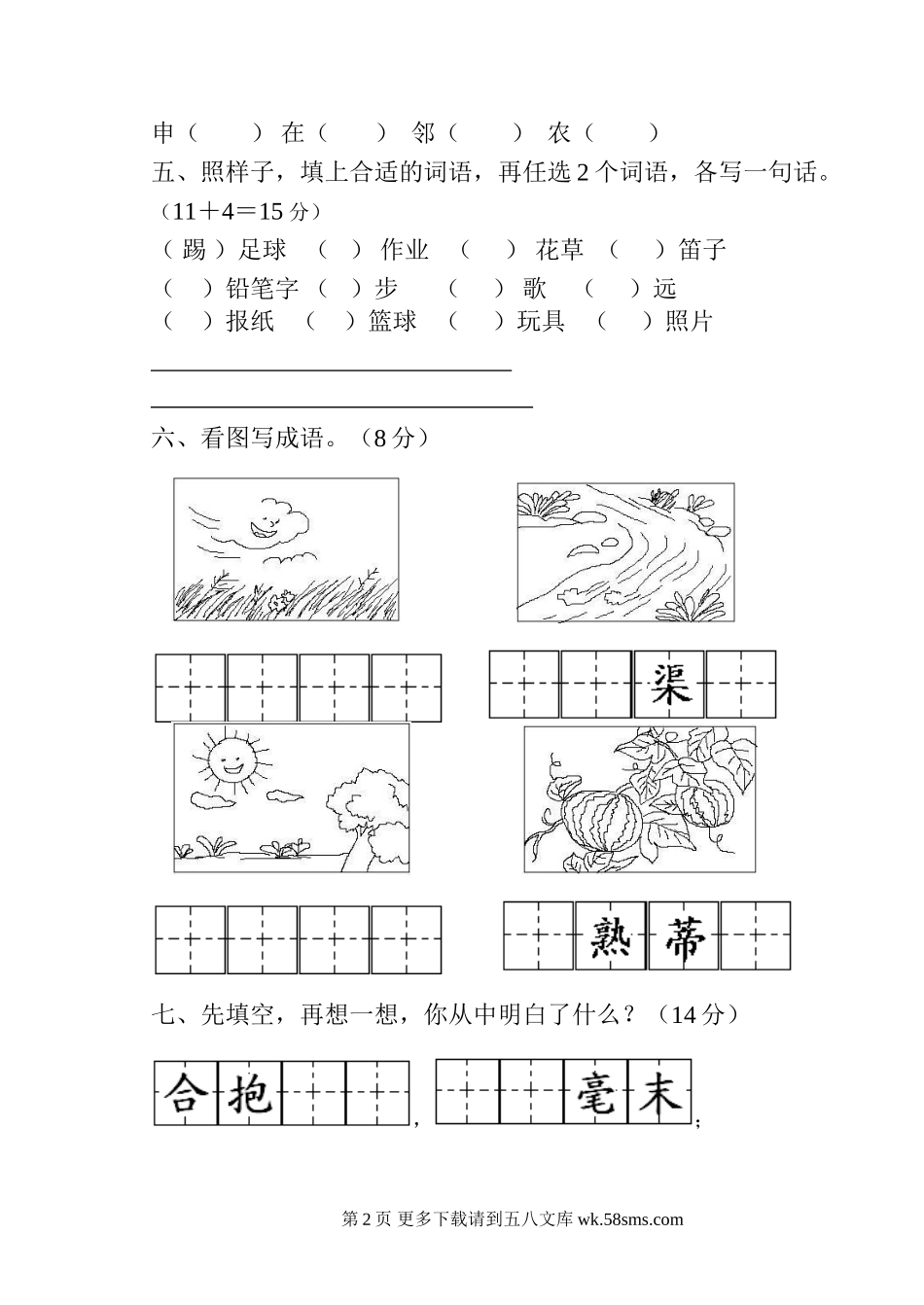 苏教版小学二年级语文第三册第三单元综合试卷.doc_第2页